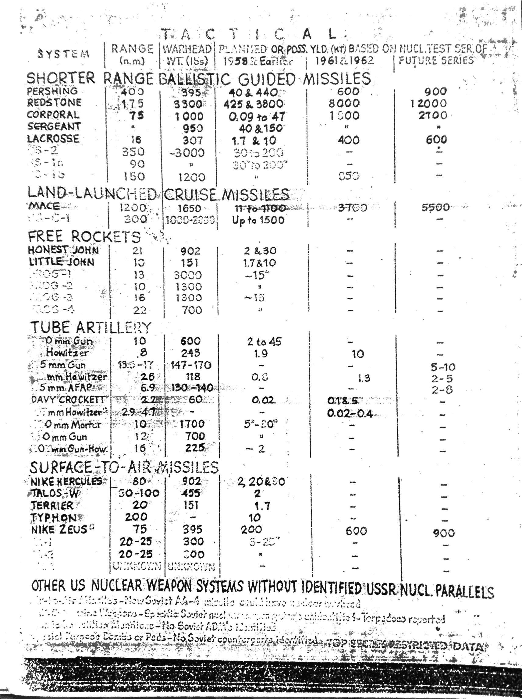 OTHER US NUCLEAR WEAPONS SYSTEMS WITHOUT IDENTIFIED USSR NUCL. PARALLELS... [LARGELY UNINTELLIGIBLE DUE TO POOR QUALITY OF MICROFILM/PDF SCAN] |