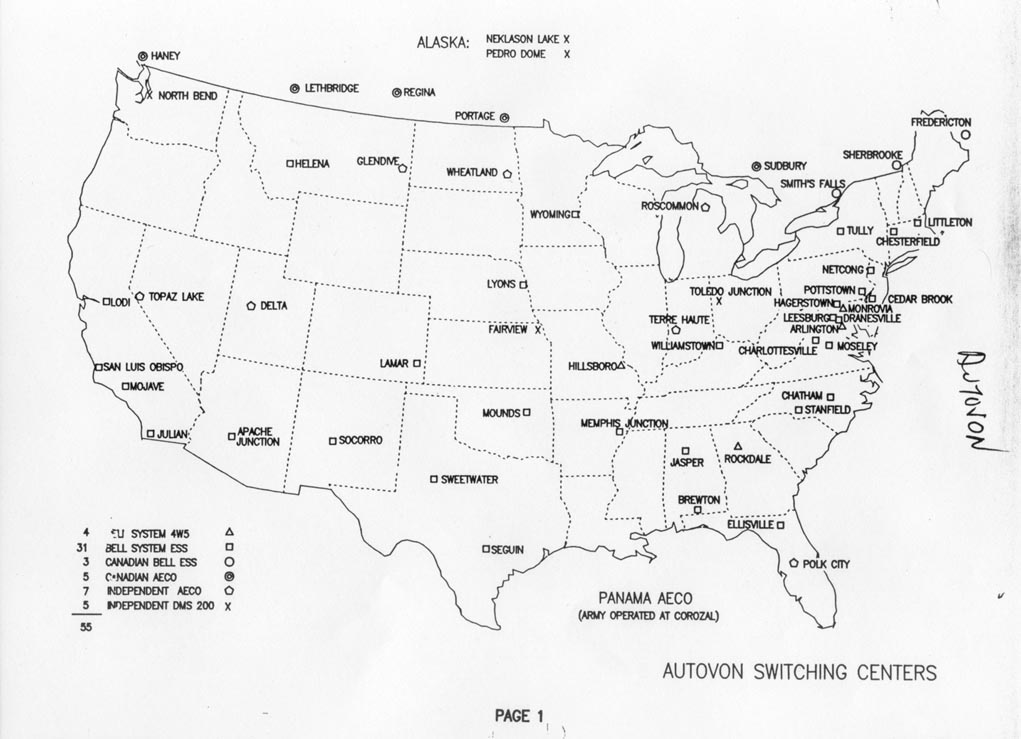 AUTOVON SitesA lot of information is contained within the Long-Lines Website (LINK) as well as this mid-1970s AUTOVON system map. |